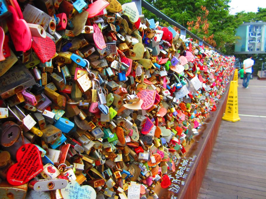 Bất kỳ một địa điểm nào được cho là nơi lãng mạn như đài quan sát của thành phố tại Nhật đều luôn tấp nập các cặp tình nhân. Những cặp đôi này tin rằng khi viết lời nhắn lên ổ khóa, khóa lại và để nó ở những nơi lãng mạn thì tình yêu của họ sẽ luôn tốt đẹp, không bao giờ chia lìa. Thậm chí có một số cặp đôi sau khi khóa ổ khóa xong còn ném chìa khóa tại nơi để chúng không thể tìm thấy được như ném xuống biển. Bạn có thể tìm thấy rất nhiều nơi tập trung khóa tình yêu như đảo Chuông tình yêu Enoshima tại Nhật. Đây là một hoạt động thu hút khách du lịch nên rất được khuyến khích.