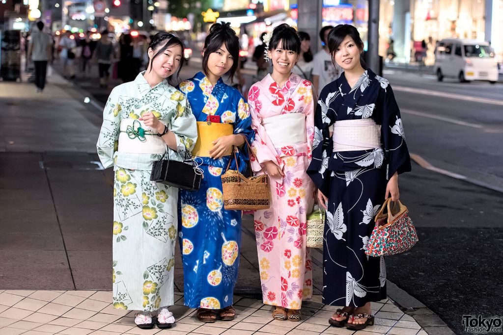 Nhắc đến mùa hè ở Nhật thì nhất định phải kể đến Yukata. Nhiều người nước ngoài vẫn thường hay nhầm lẫn giữa kimono và yukata. Tuy nhiên, đây là hai loại trang phục truyền thống Nhật Bản hoàn toàn khác biệt. Yukata được làm bằng chất liệu là vải cotton, thoáng khí nên rất hợp với thời tiết màu hè. Diện yukata còn đặc biệt thoải mái hơn kimono ở điểm người mặc yukata không cần phải mặc thêm áo lót tuban và vớ bên trong. Bên cạnh đó, yukata được sản xuất từ chất liệu vô cùng phổ biến nên có giá thành không hề đắt. Cả đàn ông và phụ nữ đều có thể mặc yukata. Mỗi khi mặc bộ trang phục này đều khiến chúng ta cảm nhận được không khí lễ hội.
