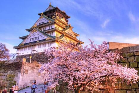 Lâu đài Osaka (chụp ảnh bên ngoài lâu đài): là một điểm du lịch nổi tiếng của Nhật Bản và là biểu tượng chính của thành phố Osaka.