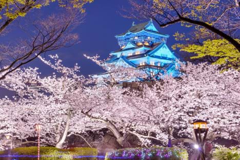 Chiều: Đoàn thăm quan chụp ảnh lưu niệm bên ngoài Lâu đài Osaka đồ sộ, uy nghi – nằm trong khu thành cổ nổi tiếng bậc nhất Nhật Bản với những chi tiết mạ vàng và màu ngói xanh ngọc.